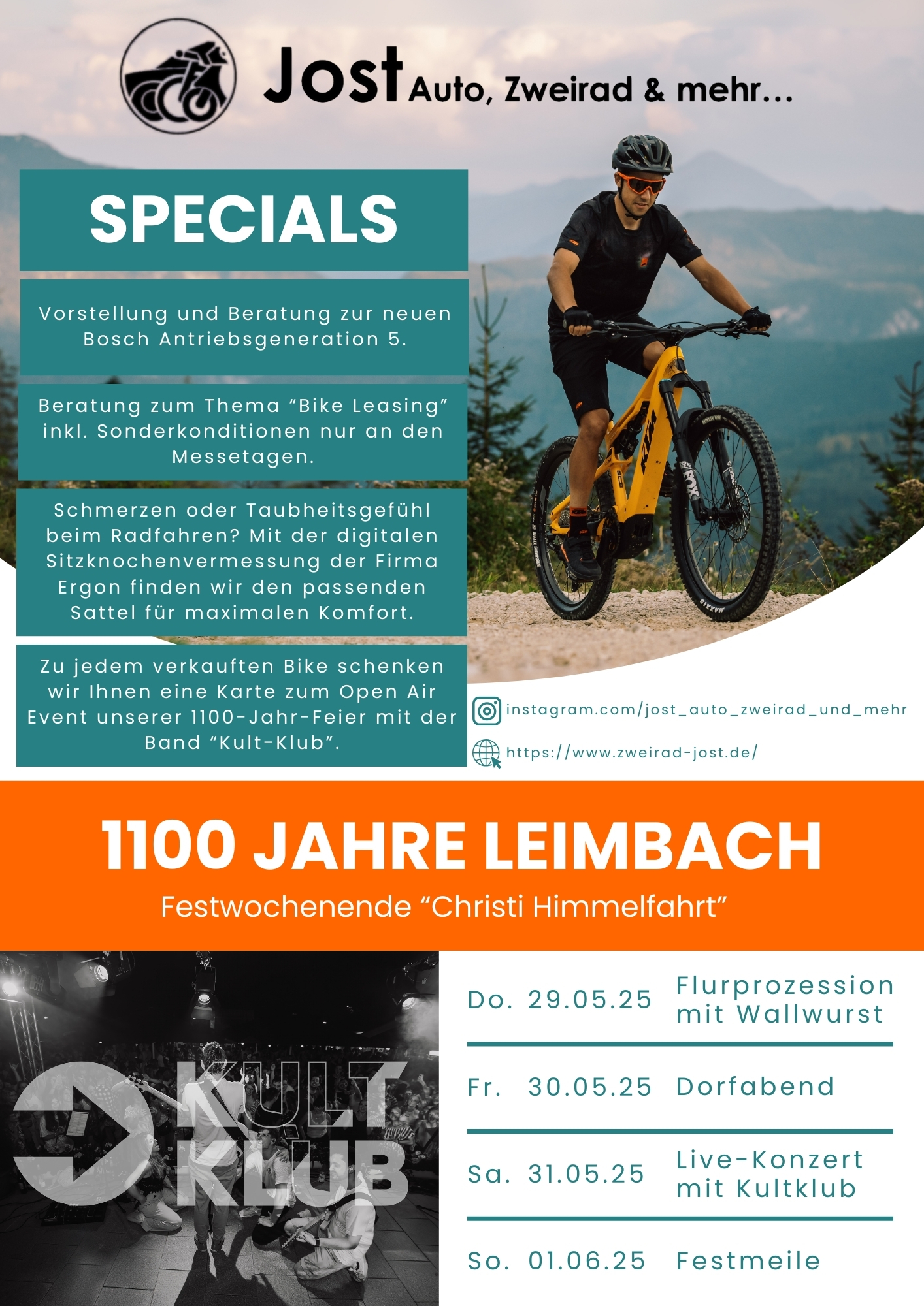 Special Deal: Beim Kauf eines Bikes erhalten Sie eine Gratis-Eintrittskarte zum Open Air Event unserer 1100-Jahr-Feier mit der Band "Kult-Klub"!